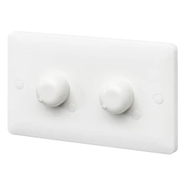 2GANG LED UNIVERSAL DIMMER · · · Made Right, Priced Right · · Comprehesive range · · Comprehesive range · · 20 year warranty · · High gloss finish · · Supplied with screw caps · · Backed out captive terminal screws · · BIM ready · · Range uses vast MK Grid choices