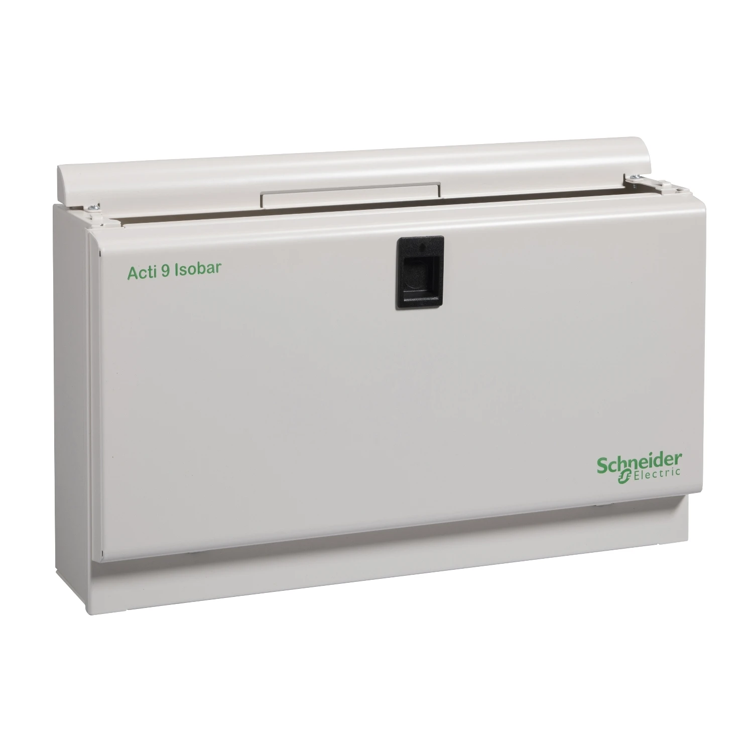 Acti9 Isobar P B Type is a complete range of type tested three phase distribution boards for commercial and industrial applications, available in Standard, Split Metered, Meter Ready, Multi-Service and Heavy Duty variants · · · Current Rating: 100A · · Number of Poles: Four Pole · · Number of modules 17 · · IP degree of protection IP3x · · 270mm extension box included · · Acti9 Isobar Contactor Incomer is not compatible with Heavy Duty distribution boards
