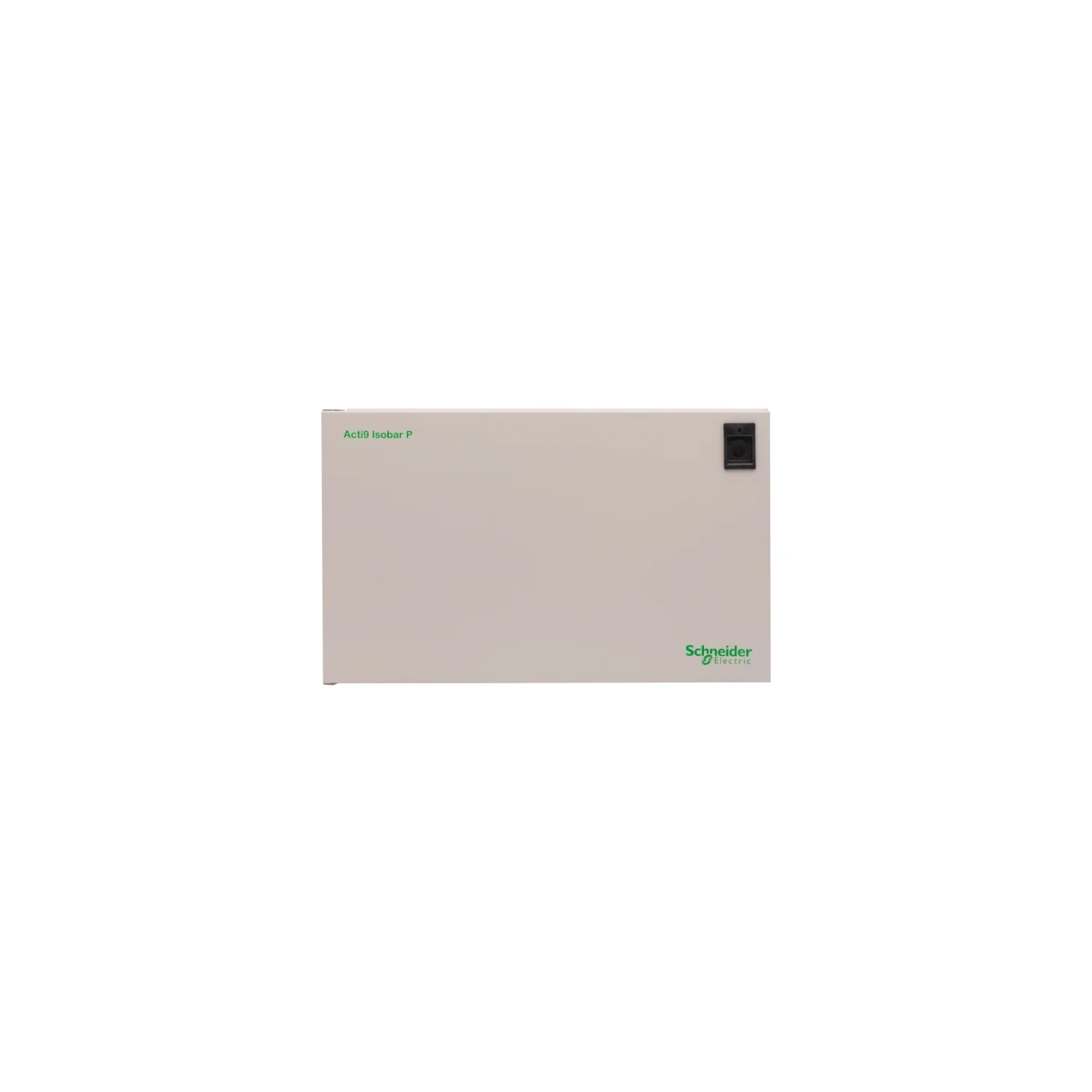 The Acti9 Isobar P A Type Distribution Boards are suitable for standard, commercial and Industrial applications. For applications of final circuit single phase distribution, typical loads serviced; Lighting, Power, IT, HVAC, Critical Power. Generally supplied by a panel board or three phase distribution board, systems are designed to ensure supply continuity selectivity and enhanced performance. · · · Plug-on neutral · · Ease of installation · · IP20 internal conforming to BS EN 60529 · · IP3x external conforming to BS EN 60529 · · ambient air temperature for operation between -35…70 °C · · IK05 degree of protection · · Powder Painted Steel with Epoxy Treatment · · Green Premium Product