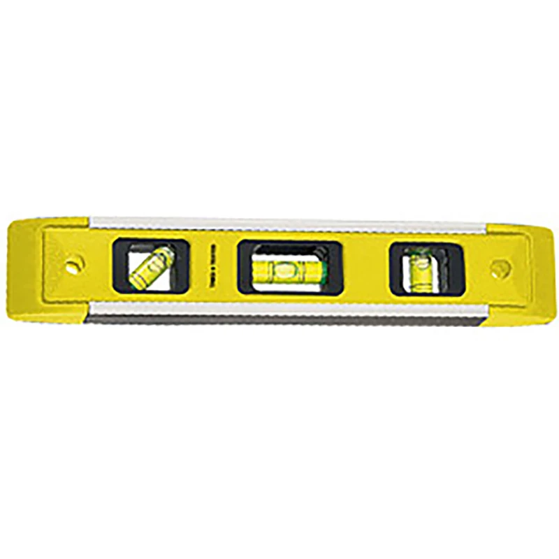 *Plastic body and aluminium side covers * Three vials: plumb, level and mitre (45) * With magnetic bar on the side * Approx size: 9″(225mm) * Approx size: 9″(225mm) · · · Magnectic · · Three vials: plumb, level and mitre (45) · · magnetic bar on the side · · weight 81.6 g · · Plastic/Metal · · This 230mm (9″) magnetic spirit level has a sturdy plastic body and aluminium side covers