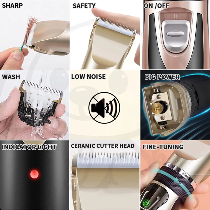 Model Number B728 Voltage 110V -240V Color Gold (can be OEM) Application Pet dogs Battery 1500ma Certification CE,FCC,ROSH Power 5W Warranty 1 year Item Name Rechargeable dog Accessories Brush, 4 combs, etc Brand can be oem MOQ 1 Piece Working life 2-3hours Feature Low Noise Super Quite Charing time 4hrs Port Ningbo/Shanghai