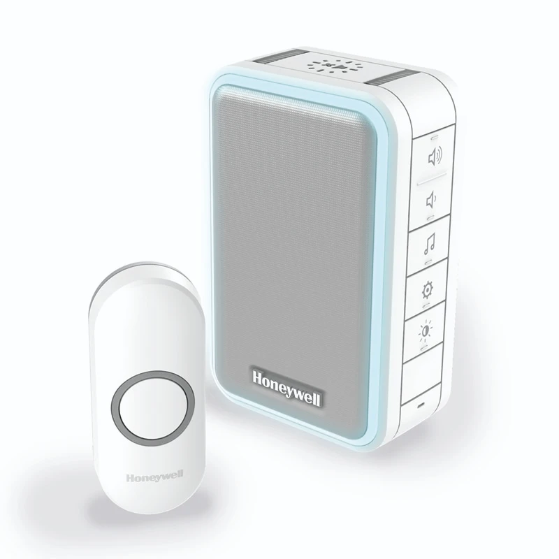 The DC315N mutes the doorbell for 2 minutes so you can relax free from disturbance. The innovative halo light will also alert to the presence of a visitor when the doorbell cannot be heard. The doorbell comes pre-linked and ready to install straight out of the box, with optional screw-free installation and an easy open battery compartment so you can be set up in minutes. · · · Up to 150m wireless range · · Digitally enhanced sound · · 84dB maximum volume (can be heard up to 80m) · · 6 melodies (hello, ding dong, westminister, marimba, telephone and soft alert) · · No wiring required · · Fixings included · · Secret Knock function allows a different melody for friends and family · · 7 colour halo light & LED strobe for visual alerts · · Volume control · · Sleep/mute mode