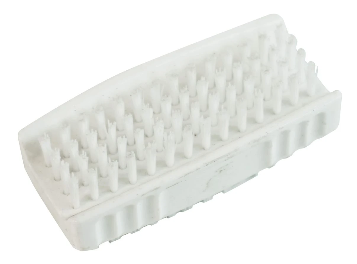 Nail brush made up of plastic housing with cleaning bristles on either side of it. Suitable for helping maintain skin and nail care for employees. · · · Very portable · · Capable of brushing off dirt, liquids and more. · · The double-sided design allows you to clean both sides of the item at the same time, saving you time and effort. · · Durable plastic bristles that can withstand harsh chemicals · · Lasts a long time: The brush is made from durable materials that can last for many years. · · Cleans nails effectively: The soft and hard bristle sides are effective at cleaning nails, and the double-sided design makes it easy to switch between the two sides.