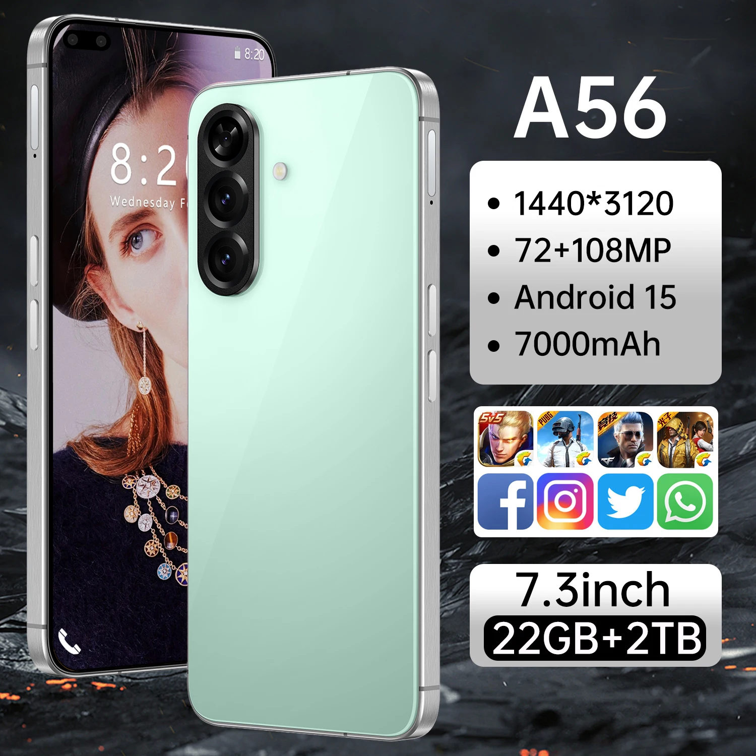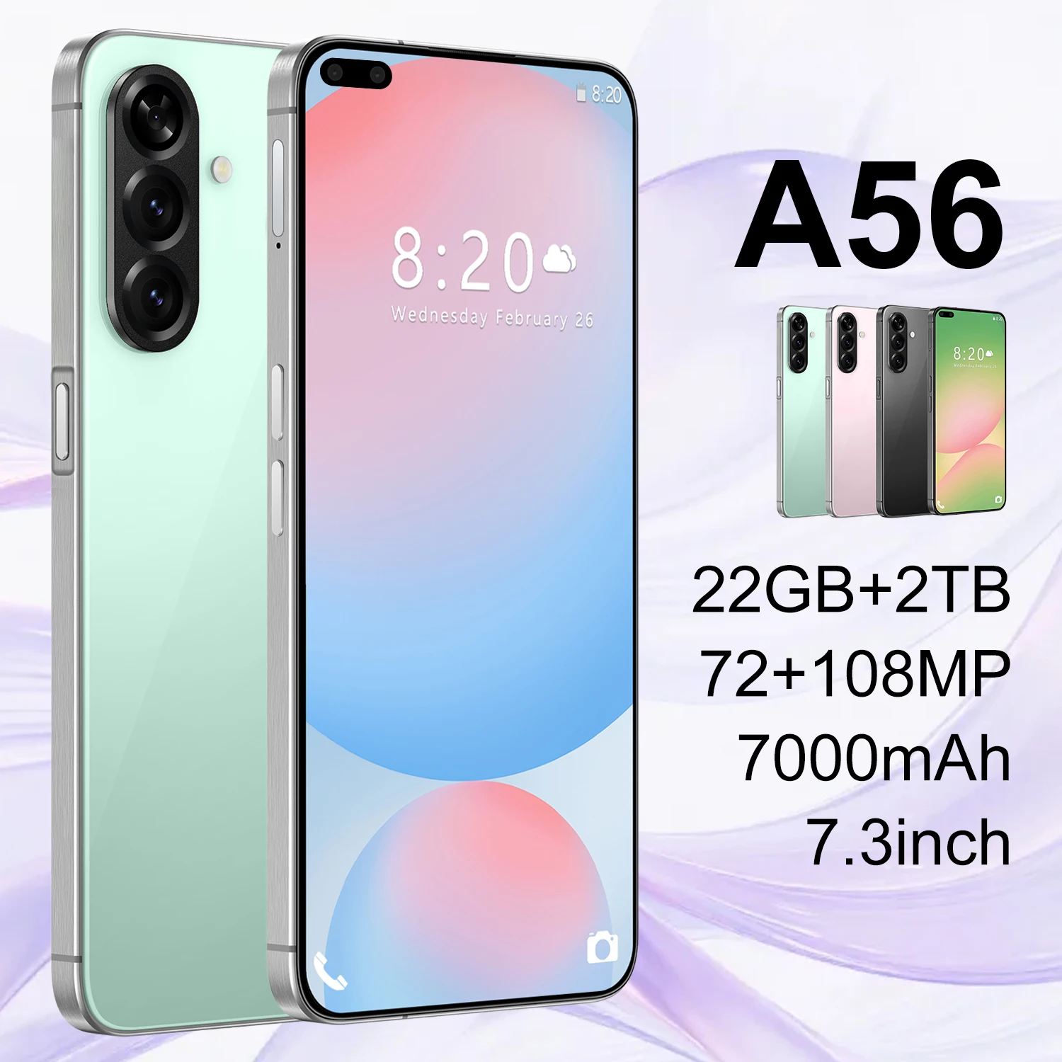 Dropshipping 16G+1TB 5G Smartphone A56 New Mobile Phone 7.3inch Large-Screen 108MP 144Hz Big Screen Global Cell Phones