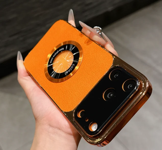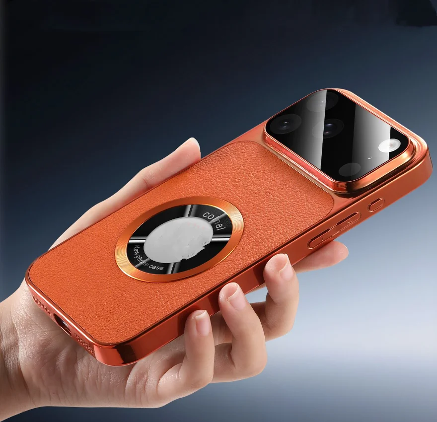 Dropshipping Luxury Hollow Logo PU Leather Magnetic Case 16 Pro Max Electroplating Frame Shockproof Cover for iPhone 17