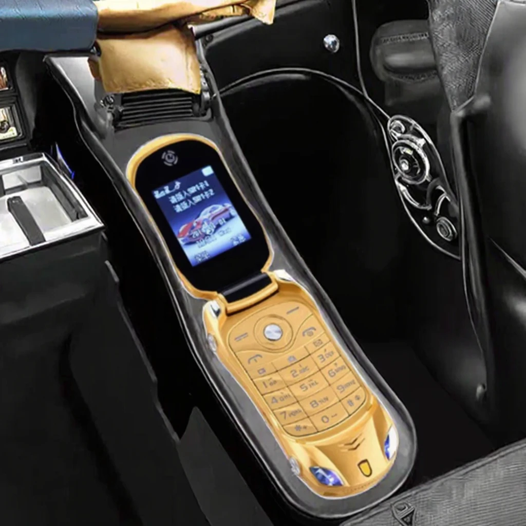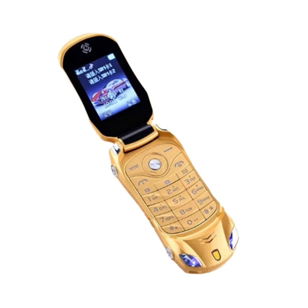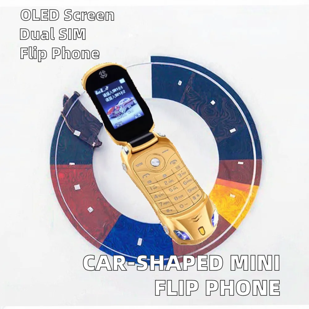 Dual SIM Mini Mobile Phone MP3/MP4 Player Flip Unlock Push Button Flashlight Car Shape Model Super Small Feature Phone OLED Bar