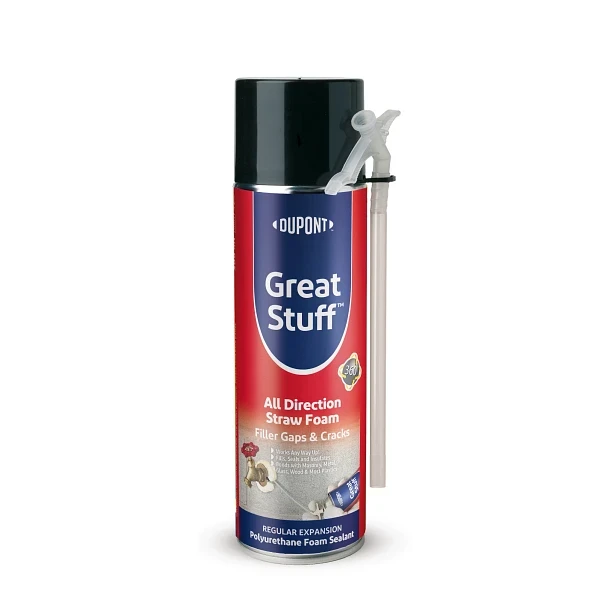 Dow Great Stuff Pro All Direction Straw Foam is a high performance polyurethane foam that seals, fills, bonds and insulates most construction materials. Its flexible applicator nozzle allows application through 360 degree. · · · Ready to use, high performance, one component material · · Fast curing · · Can be cut, sawn, sanded, painted or plastered over after application. · · Straw applied · · Can be cut, sawn, sanded, painted, or plastered over after application · · Application method Spray