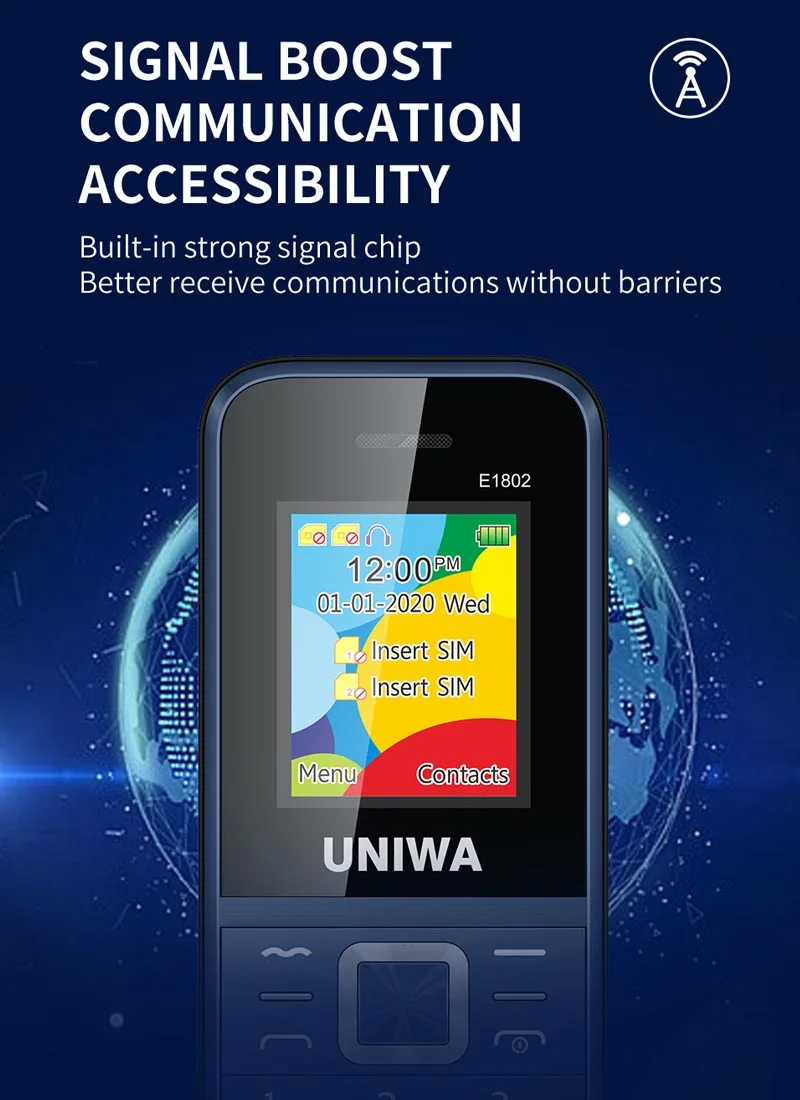 E1802 2G Cellphone 1.77 Inch Flip Phone Push Button 1800mAh Telephone for Senior Elder Dual SIM Dual Standby Wireless FM