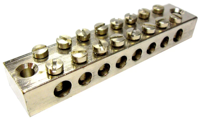 This is a 8 way main earth terminal block manufacutred from a brass casting material in a nickel plated finish. · · · Pack Quantity: 1 · · Gland Material: Brass Nickel Plated · · Length Min Max: 88 mm · · Width: 19 mm
