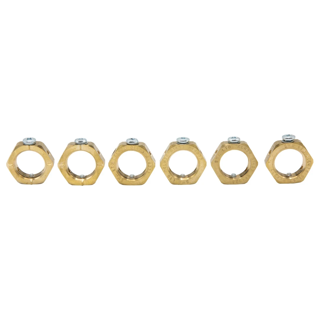 Earthing Nuts c/w Grub Screws & Washers Pk=6 M20 Brass