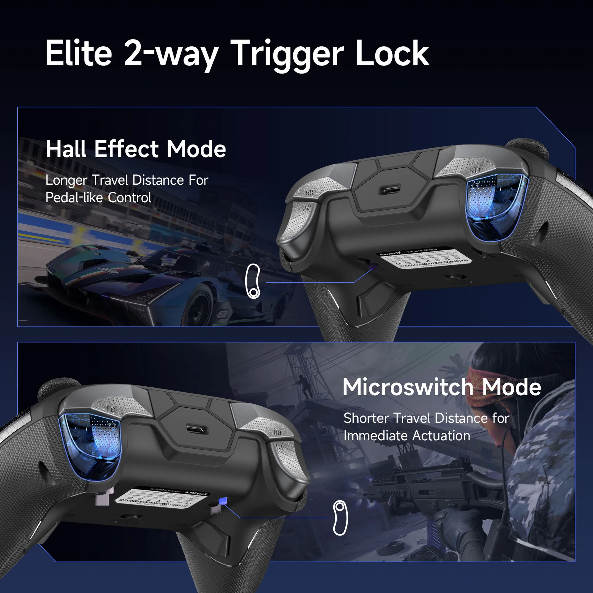 | feature | TMR joystick, dual cut trigger, smart charging base |