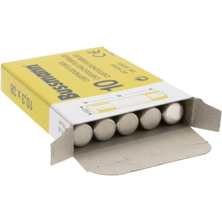 Technical Specifications Technical Specifications Cylindrical fuse Utilization category gG (cable protection/equipment protection) Model Ceramic fuse Size 10×38 mm Rated current 8 A Voltage type AC Power loss at rated current 0.75 W · Technical Data Sheet – Click to Download