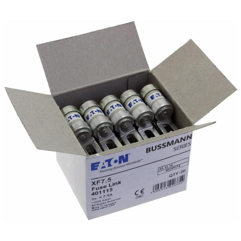 Cooper Bussmann XF7-5 Fuse Time Lag 7.5A. The time delay or ‘time limiting’ fuse links are used in conjunction with circuit breaker overcurrent releases. The time delay fuse link is connected in parallel with the trip coil and is fed via a current transformer on the primary side of the circuit breaker. · · · Product: Fuse · · Rated Current: 7.5 A · · Fuse-link · · Low voltage · · 15 x 58 mm,ESI 12-6 · · For use with current transformer releases on circuit breakers · · Modifies the breaker tripping characteristic