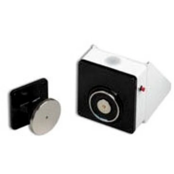 Technical Specifications Technical Specifications Magnet for door locking mechanism Housing material Plastic Construction type Round Mounting method Surface mounting Width – mm Height – mm SIL according to EN 62061 – Power consumption 1 W Operating voltage – V Gripping force – N Wall distance – mm Floor mounting No Suitable for ceiling mounting No With anchor plate Yes Suitable for wall mounting Yes · Technical Data Sheet – Click to Download · Technical Data Sheet – Click to Download