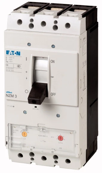 Circuit-breaker NZM3, 3 pole, Switching capacity 400/415 V 50 Hz( Icu ): 50 kA, Rated current = rated uninterrupted current Rated current = rated uninterrupted current( In = Iu ): 400 A, Installation type: Fixed, Screw connection, Standard/Approval: IEC, Protective function: System and cable protection · · · System and cable protection · · Thermomagnetic release · · Fixed installation · · Finger and back of hand proof to VDE 0106 Part 100 · · IEC/EN 60947 Standard