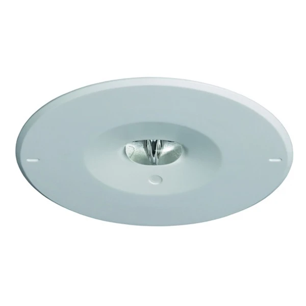 Technical Specifications Technical Specifications Emergency luminaire Protection class according to IEC 61140 II Lamp cap/base None Housing material Plastic Light diffuser type Focal lens Degree of protection (IP rating) IP44 Battery chemistry NiCd Impact resistance (IK rating) IK04 Housing colour White Control gear LED driver constant current Type of cabling Suitable for through wiring Mounting method Built-in Voltage type AC Light source type LED non-replaceable Connection type Screw connection Width 290 mm Conductor cross section 2.5 mm² Number of poles 4 Recess diameter 64 mm Number of lighting heads 1 Recess width – mm Lumen maintenance at median useful life of 50,000 hrs at 25 °C ambient (tq) – % Max. number of luminaires per miniature circuit breaker C16 – Lumen maintenance at median useful life of 100,000 hr at 25 °C ambient (tq) – % Failure rate at median useful life of 50,000 hrs at 25 °C ambient (tq) – % Luminous flux in standby mode 148 lm RAL-number housing – Failure rate at median useful life of 100,000 hrs at 25 °C ambient (tq) – % Flickering value Pst LM – Viewing distance – m Stroboscope effect value SVM – Rated life time L70/B50 at 25 °C – h Max. number of luminaires per miniature circuit breaker B16 – Number of lamps 1 Power factor 0.5 Maximum system power 2.5 W Outer diameter 90 mm Nominal voltage 220 – 240 V Nominal current – mA Colour temperature 6200 – 6200 K Rated ambient temperature acc. IEC62722-2-1 5 – 35 °C Nominal operation time 3 – 3 h Constant luminous flux control No With remote switch connection Yes Replaceable control gear No Luminaire with limited surface temperature, class “D“ in acc. with EN 60598-2-24 Yes Pictogram included No Suitable for standby switching No Suitable for continuous circuit No With remote control No Light source included Yes