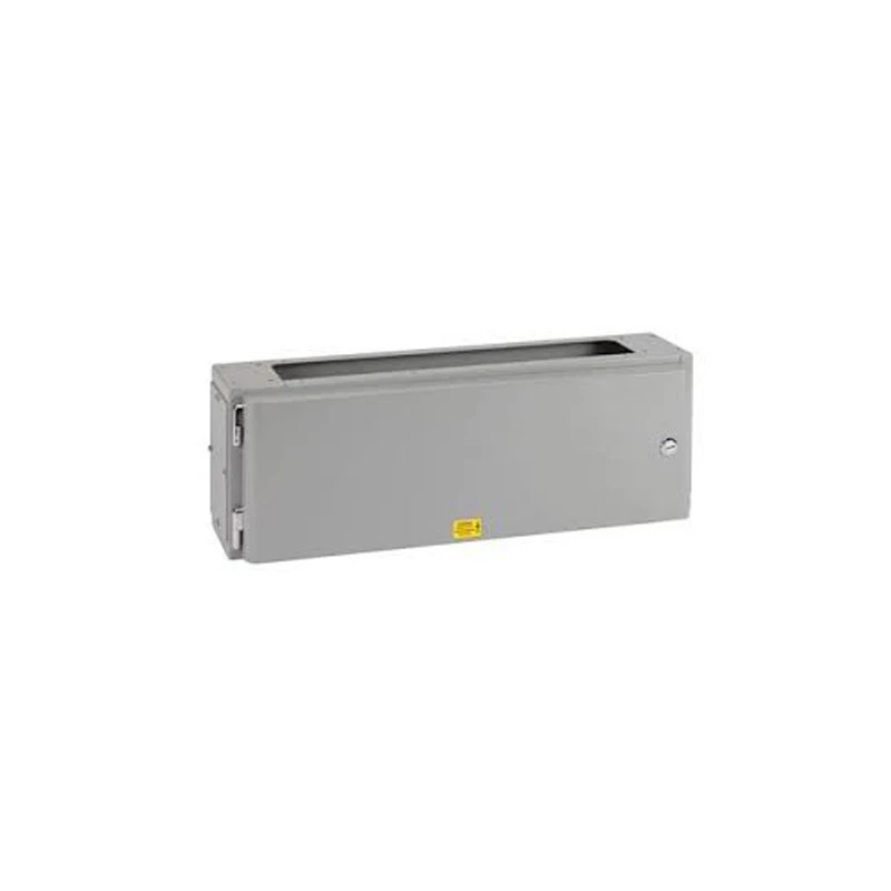 The Eaton Top / Bottom Mounted Cable Extension Box Grey is a versatile and affordable solution for extending the cable length of an Eaton Memshield 3 panelboard. The cable extension box is made of high-quality materials and is easy to install. It is also available in a variety of sizes to accommodate different panelboards. · · · 250mm high enclosure, fitted incoming end · · When fitted at the feed end of the 400A/630A/800A boards there is no need for a cable extension box · · The cable extension box can be used to increase the cable length of an Eaton Memshield 3 panelboard by up to 250mm. This can be useful in situations where the existing cable length is not long enough to reach the desired location. · · Fitted incoming end