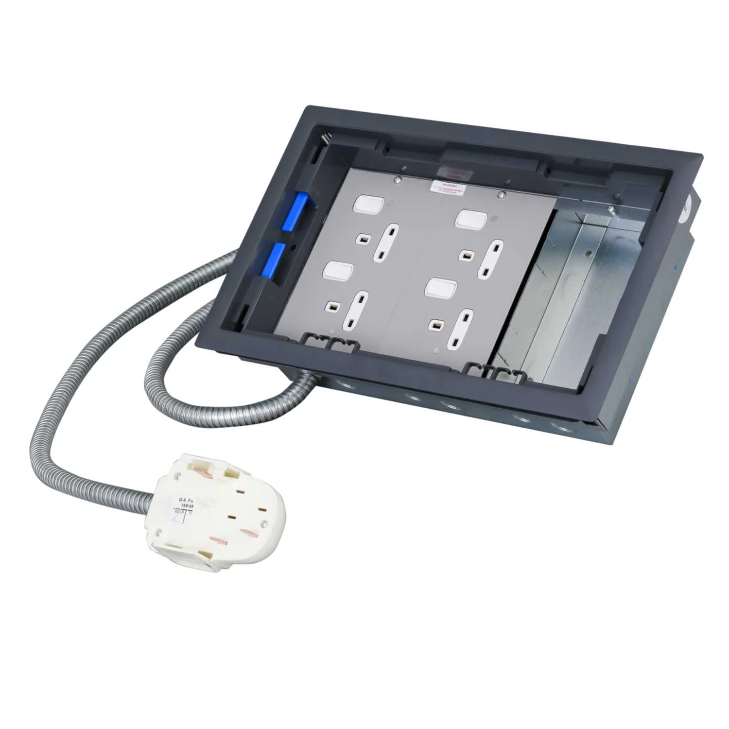 Electrak Floor Box 3 Compartment 2 x 2 Gang RCD Socket+Dp1532 Tap-Off