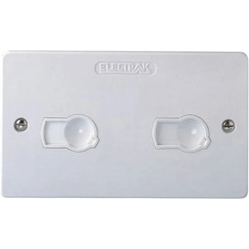Electrak International AZ0010 unswitched twin socket is alternative to conventional socket outlets where non-standard applications are beneficial such as computer integrity, electronic equipment or just for the safety of the unique simple twist action double shutter access. · · · Colour: White · · Height: 86mm · · Length: 146mm · · Material: Polycarbonate · · Depth: 30mm · · Number of Sockets: 2 Socket · · Unswitched twin socket · · Polycarbonate cover plate · · For use with AP13-WH plug