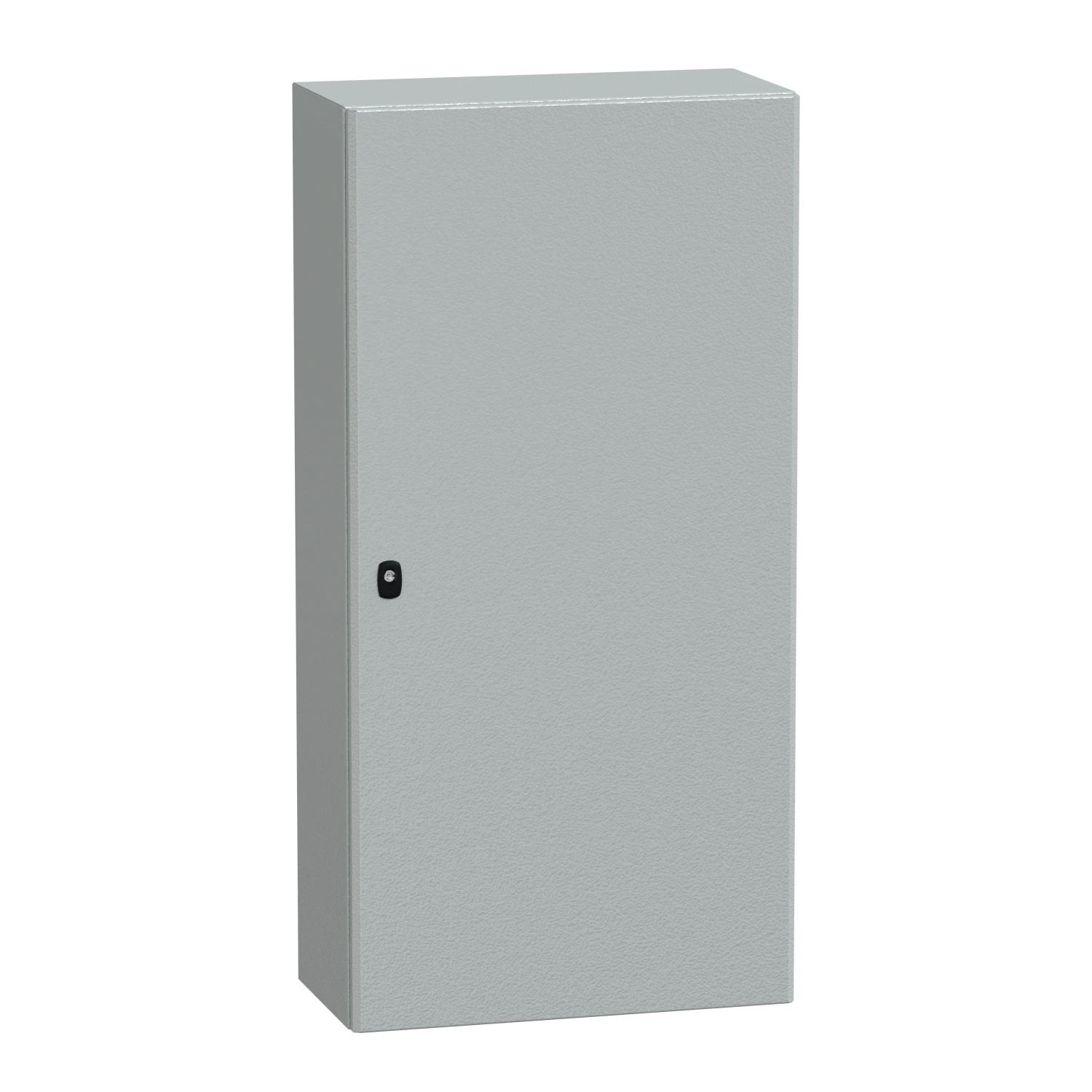 Spacial S3D wall mounted steel enclosure with plain door. 1199 x 600 x 300 mm. Single piece body, mounting plate included. 3-point closure system with handle and 3 mm double bar lock insert. Steel made, epoxy-polyester powder finish. Protection IP 66, IK10, Grey RAL 7035. · · · Spacial S3D wall mounted steel enclosure with plain door. · · 1199 x 600 x 300 mm. · · Single piece body, mounting plate included. · · 3-point closure system with handle and 3 mm double bar lock insert. · · Steel made, epoxy-polyester powder finish. · · Protection IP 66, IK10, Grey RAL 7035.