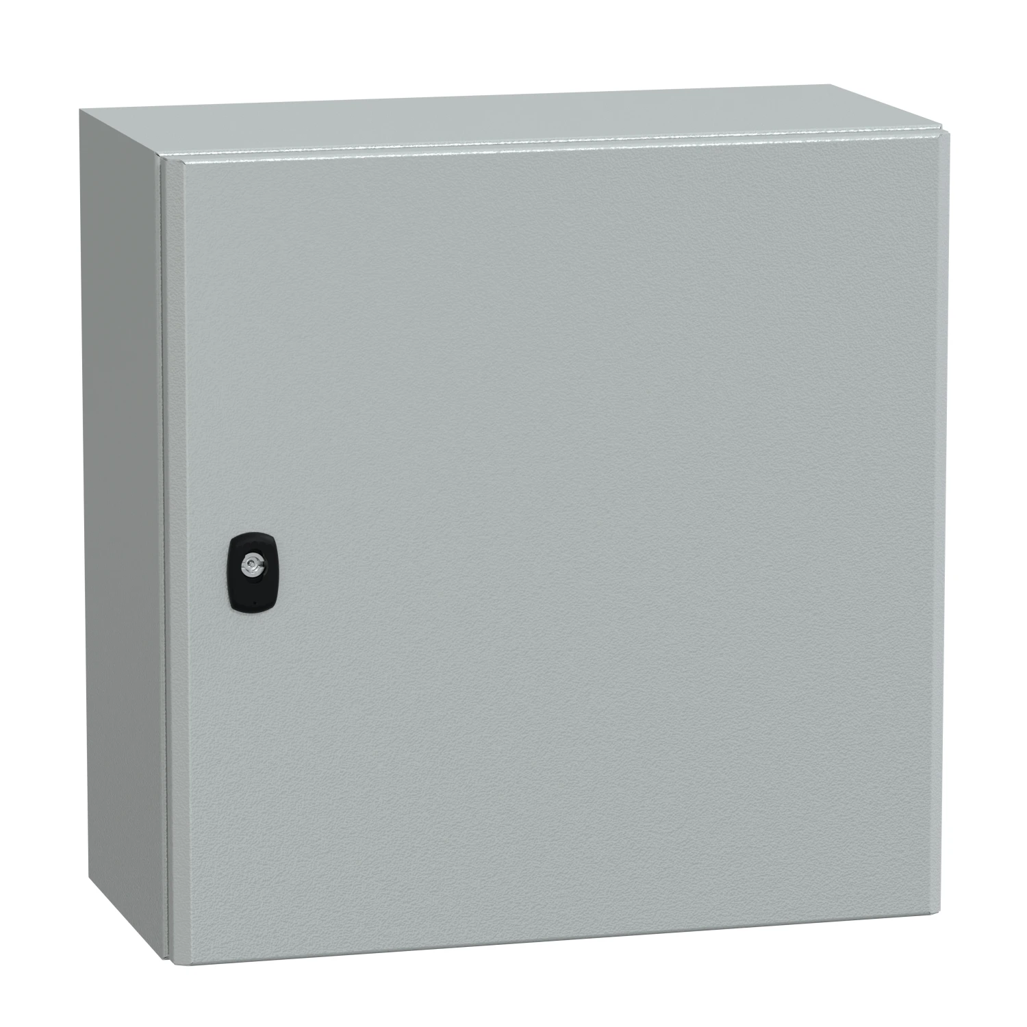 Spacial S3D wall mounted steel enclosure with plain door. 500 x 500 x 250 mm. Single piece body, mounting plate included. 3 mm double bar lock insert. Steel made, epoxy-polyester powder finish. Protection IP 66, IK10, Grey RAL 7035. · · · Spacial S3D wall mounted steel enclosure with plain door. · · 500 x 500 x 250 mm. · · Single piece body, mounting plate included. · · 3 mm double bar lock insert. · · Steel made, epoxy-polyester powder finish. · · Protection IP 66, IK10, Grey RAL 7035.