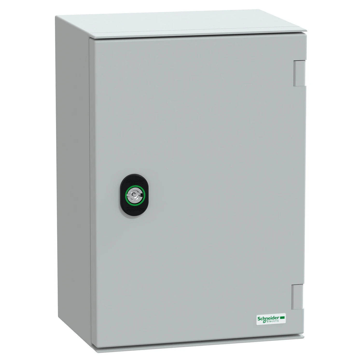 Technical Specifications Technical Specifications Enclosure/switchgear cabinet Colour Grey Degree of protection (IP rating) IP66 Impact resistance (IK rating) IK10 Material Plastic Width 215 mm Number of doors 1 Depth 160 mm Height 310 mm RAL number 7035 Number of locks 1 Tackable No Pole fastening Yes EMC-version No Floor installation possible No Mounting plate depth-adjustable No Suitable for wall built-in Yes With glazed door No Pitched roof No Suitable for outdoor set-up No Suitable for metrical mounting Yes With ventilation door No With backside door No Wall fastening possible Yes With mounting plate No · Technical Data Sheet – Click to Download