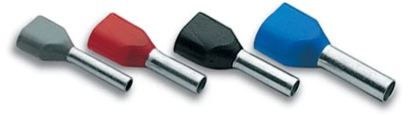 2 x 10mm² Twin Polypropylene insulated end sleeve 14mm pin length brown · · · Polypropylene insulation · · Annealed to guarantee optimum ductility · · Electrolytically tin-plated to avoid oxidisation · · Halogen free · · -20°C to +115°C Temperature Range · · For Fine Stranded Conductors