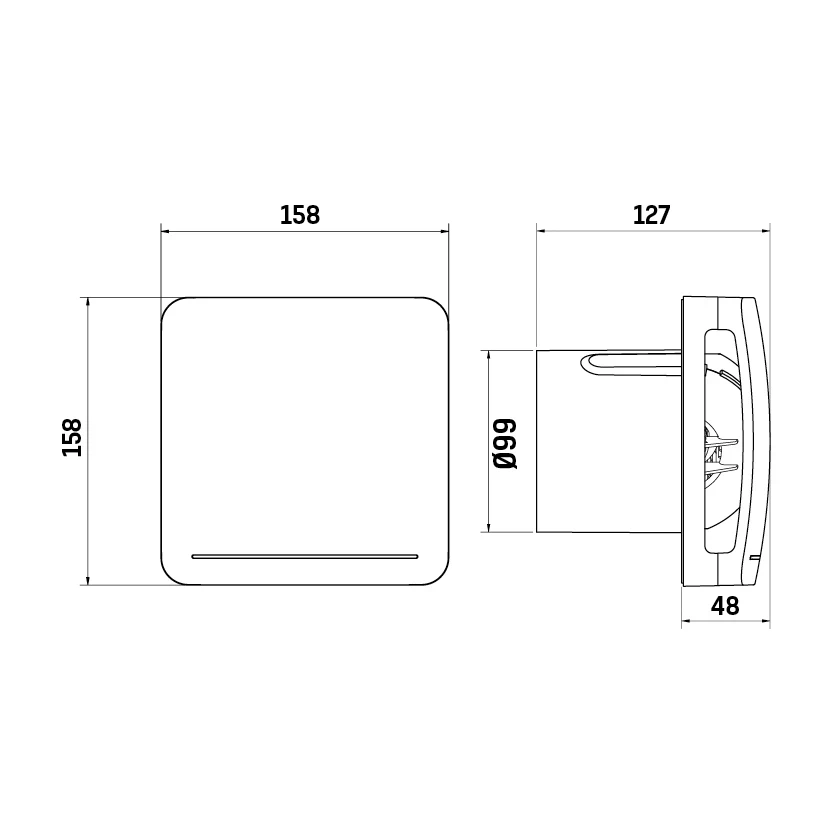 Technical Specifications Technical Specifications Ventilator for in-house bathrooms and kitchens Nominal current 0.04 A Depth 127 mm Height 158 mm Width 158 mm Rotational speed 3172 1/min Nominal width 158 mm Rated voltage 230 V Mains frequency 50 Hz Flow rate 212 m³/h With connection set No · Technical Data Sheet – Click to Download
