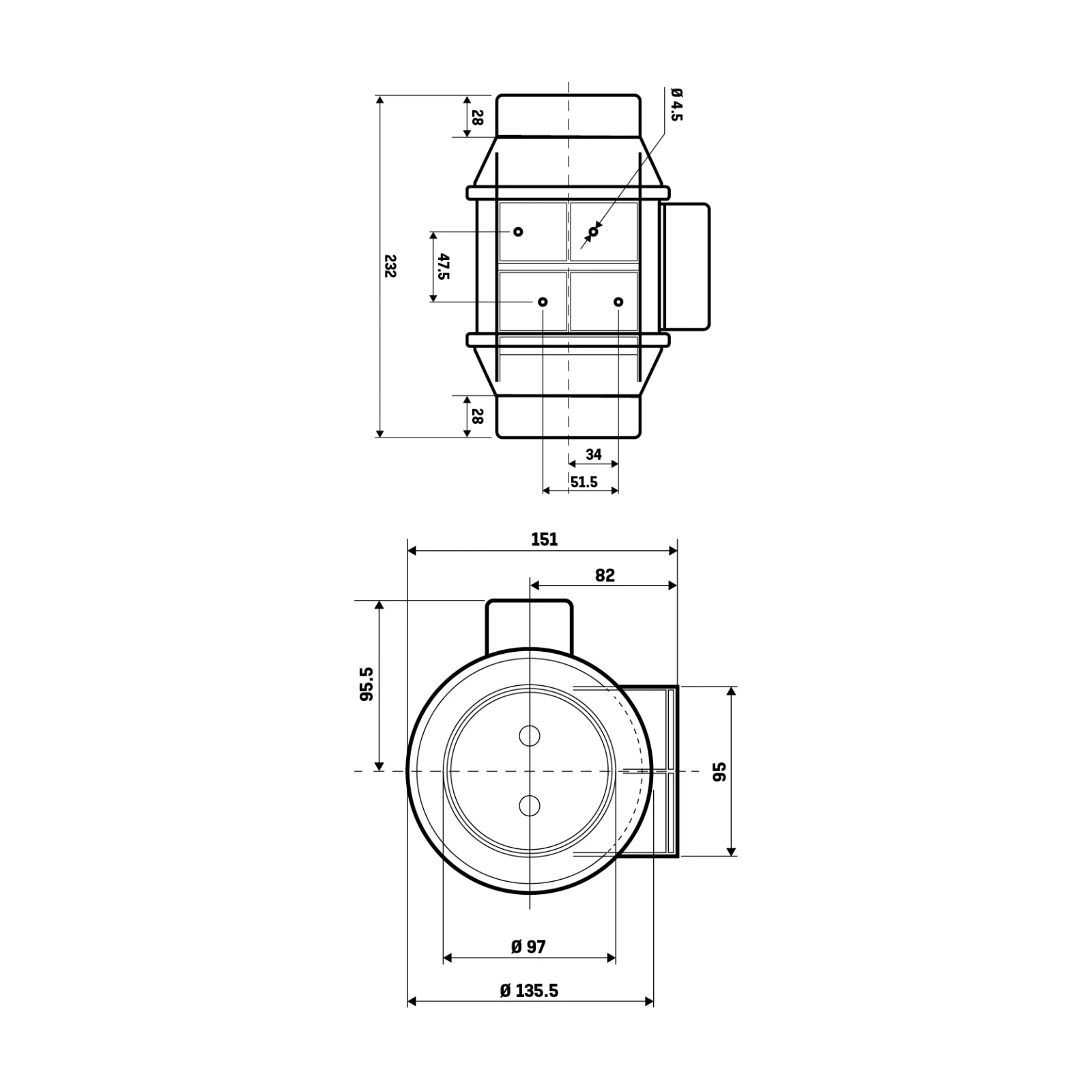 Designed to solve ventilation problems in utility rooms and bathrooms. · · · Sealed for life ball bearings · · Silent elastic blocks · · Fitted with a two-speed motor · · Flexible location · · IP44 rated · · Incredibly silent running · · High performance, ultra quiet inline fan · · Significant energy savings · · Complies with building regulations · · Easy installation