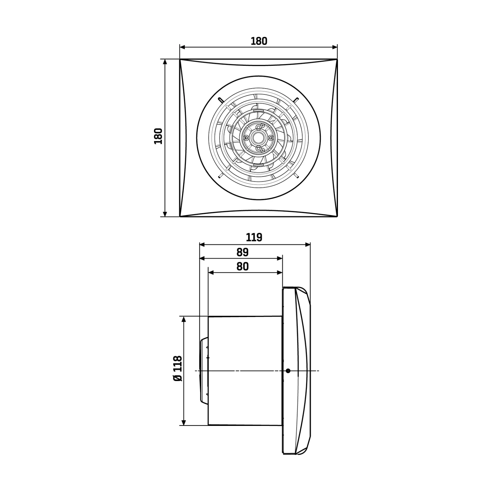 EnviroVent SIL125S SILENT Fan Silent Extractor 125mm Model 180x180x119mm c/w Backdraft Shutter · · · Product: Fan · · Type: Silent · · Use: Domestic · · Shape: Square · · Motor Power: 16 W · · Mounting: Wall · · Ingress Protection: IP45 · · Air Extraction Rate m3/h: 180 Meters3/hour M3/h · · c/w Duct: Y · · Overall Length: 180 mm