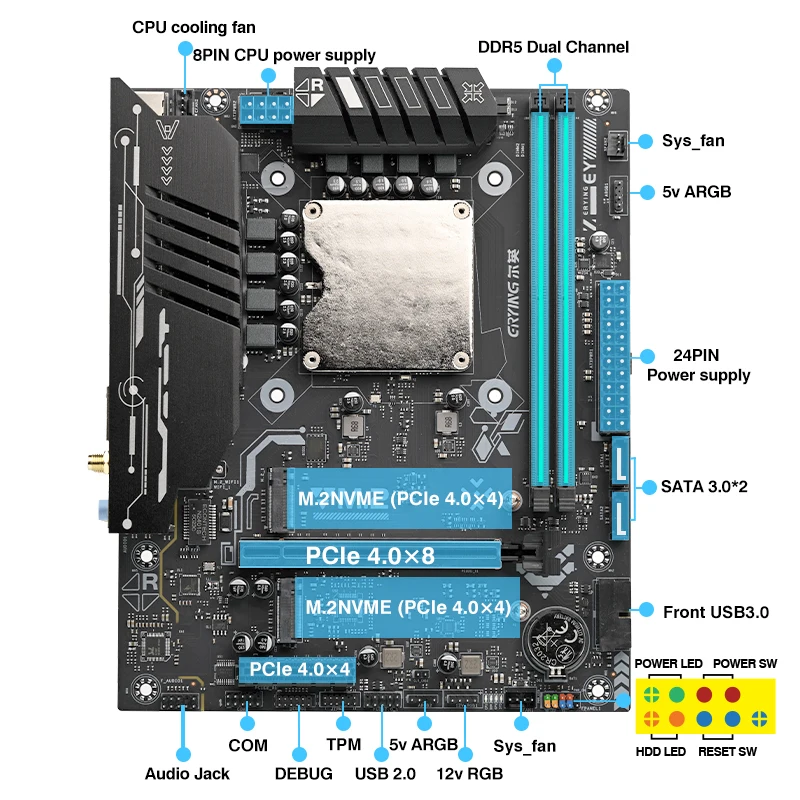 ERYING New DIY Micro-ATX Motherboard DDR5 Dual Channel ARGB LGA1151 Onboard CPU AI Gaming WIFI6E Mainboard