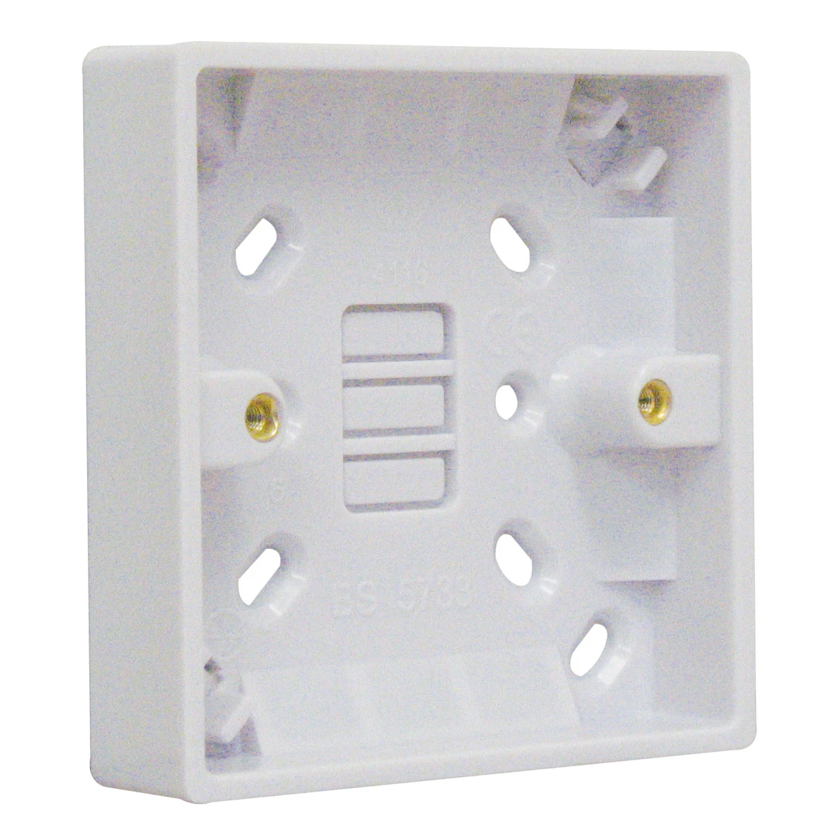 The 11P116 1 Gang 16mm pattress surface back box is from the Denmans Essentials range of Wiring Accessories, boasting a clean white and durable square edge design to suit any domestic or light commercial application. · · · Traditional square edge profile design to suit any application · · Durable and long lasting backed by a 25 year guarantee · · Certified to ASTA:BEAB, Intertek and HKSTC standards · · Fully adjustable with large fixing points · · Supports surface mounting method · · 1 Gang · · 16mm depth · · Top entry suitable for mini-trunking