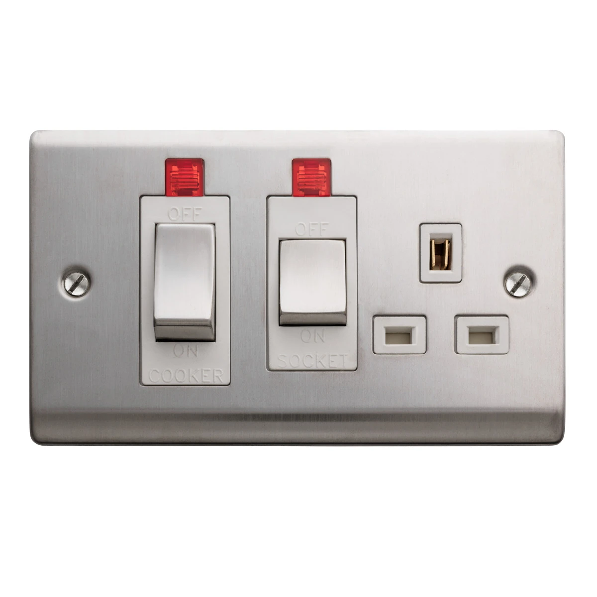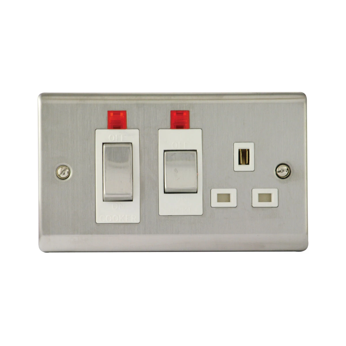 Essentials 23CC45SS1L 45A Double Pole Switched Cooker Control Unit Satin Steel with White Insert & Neon
