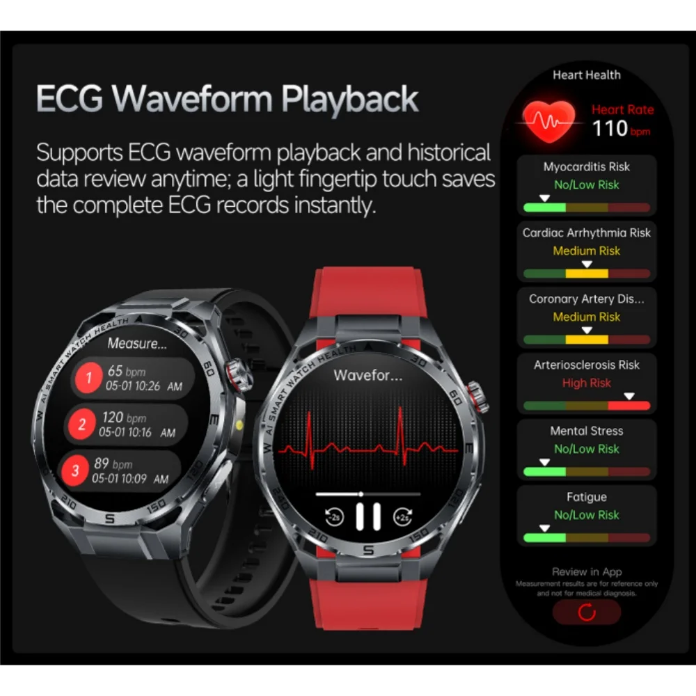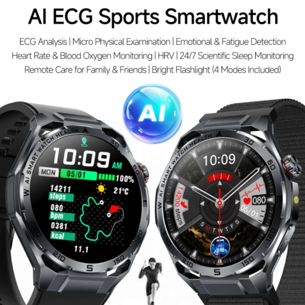 ET474 ECG Smartwatch for Men with Flashlight Multiple Sport Modes Heart Rate Fatigue Monitoring Message Reminder IP68 Waterproof