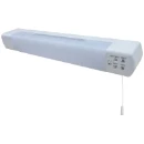This 6W LED over mirror light fitting provides a pleasing light appearance with a built in permanent dual voltage shaver socket with a pull cord switch. It’s the perfect solution for long term performance in any modern bathroom to provide additional lighting and power in one unit. It is an energy efficient and a long life alternative to replace traditional fluorescent products.- 6W Rated- Lumen rating: 400lm- 3000K warm colour temperature: offering a pleasing light appearance- Polycarbonate construction- Requires 1 x S15 284mm double ended tubular lamp (included). Fitting is rated at 60W max- This luminaire is compatible with bulbs of the energy classes: APlus to E and is sold with a bulb of the energy class: APlus- IP20 Rated- Can be used in Bathroom Zone 3- Safety isolating transformer: for bathroom use- NOTE: the shaver socket will only operate when the light is switched on