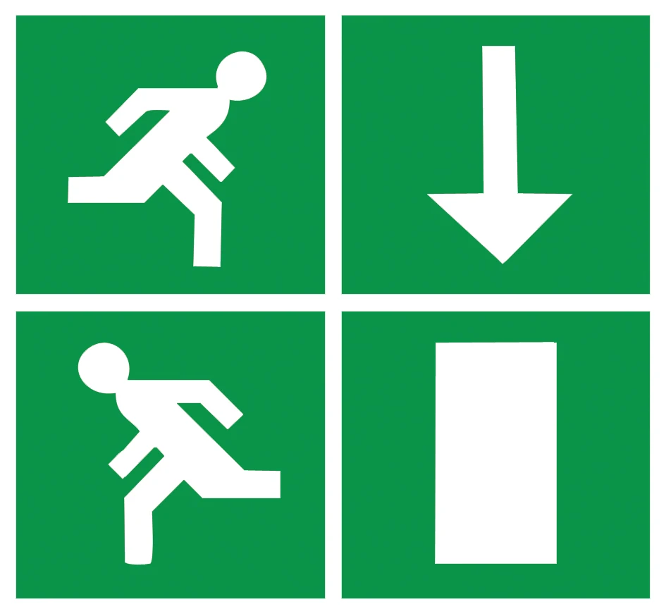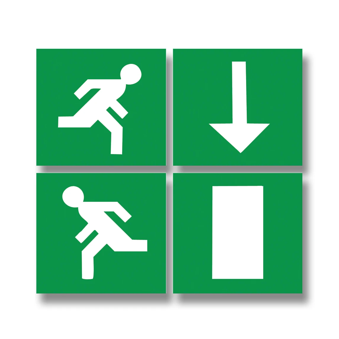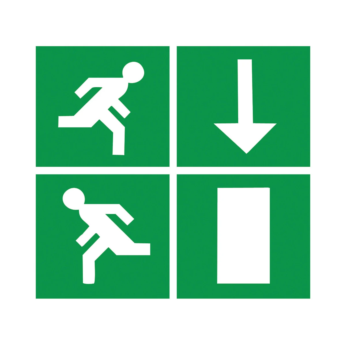 Technical Specifications Technical Specifications Emergency luminaire legend Pictogram description Exit Direction Downwards Model Sticker Width 100 mm Length 100 mm Double-sided No · Technical Data Sheet – Click to Download