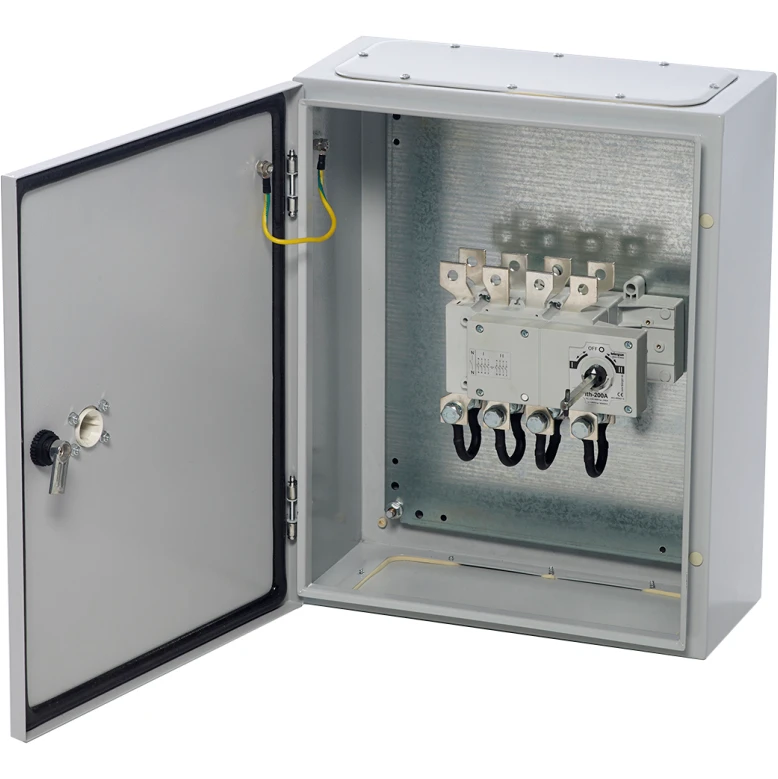 Europa 160a (ac-23) enclosed 3p + switched neutral changeover switch (ip65). · · · High reliability · · Space saving · · Energy Efficient · · Ingress Protection: IP65 · · Handle padlockable in the OFF position · · 3 position switch (centre OFF) · · Switched neutral contact (early make/late break) · · Top & bottom gland plates · · Door interlock with defeat mechanism · · Tunnel terminals