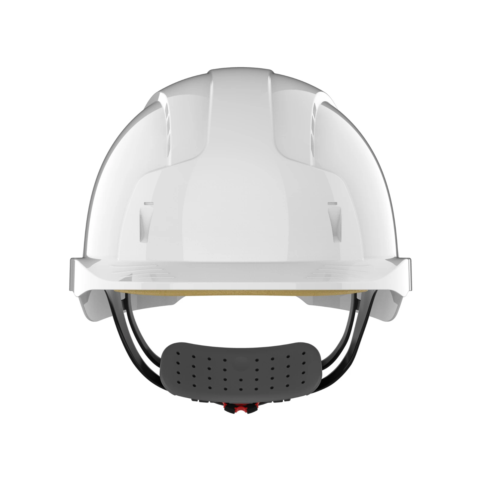 The EVOLite EN397 Industrial Safety Helmet is a breakthrough product enabling Health and Safety Officers to achieve new levels of compliance due to its unrivalled comfort. It is lightweight, extremely comfortable and fits the widest range of head shapes and sizes. The harness and shell are truly integrated as one to give the best performance by keeping it firmly rooted on the head, even when fully inverted. Gives added security and protection when working in high winds, or when there is a high degree of activity, such as during motorway maintenance. · · · Conforms to EN 397 industrial helmet standard · · Lightweight industrial safety helmet · · Tough ABS shell · · Weighs as little as 300g (Model dependent) · · Precision fit with unique 1-2-3 point harness depth adjustment · · Revolution Wheel Ratchet