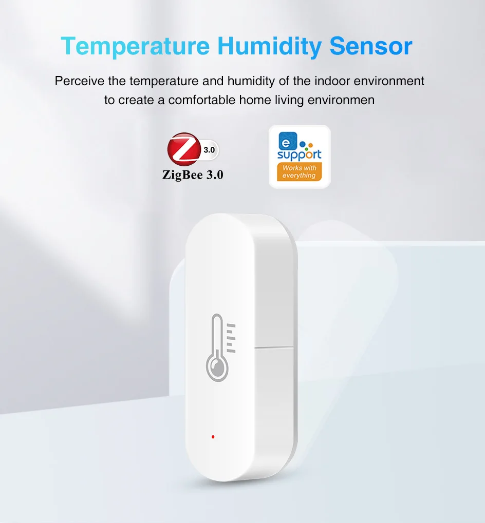 Specification item value Place of Origin GUA Brand Name Eruiklink/OEM Model Number WSD001 Warranty 1 year Type Temperature and Humidity switch Voltage 3.7-12V or OEM Customized Yes Whether the smart Yes IP level IP22 Product name Temperature and Humidity Sensor Wireless type Zigbee Battery: 2 * AAA Humidity detection range 0-99% RH Temperature detection range: 10-50 ℃ Accuracy: ± 1 ℃/± 4% RH Size: 70 * 24 * 19mm App Name Ewelink Material Plastic Using range Electric Heating Products Product Description Packing & Delivery