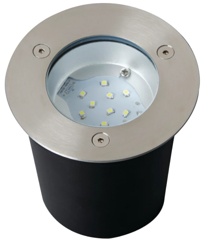 EWOK LED mains groundlight, IP67, 10 White LED’S, 6000K · · · Suitable for use in indoor and outdoor applications: bars, stair risers & strings, ceilings, restaurants, kitchen unit plinths, decking areas, patios, paths & walkways · · LED replacement for halogen decking lights · · 316 marine grade stainless steel front plate with very high resistance to corrosion · · Die cast aluminium housing · · This product is Class 1 and requires earth · · Complete with plastic sleave for mounting in brickwork/concrete · · Suitable for walk-over application · · Prewired with 3m rubber flex · · Wide operating ambient temperature range of -20C to +40C