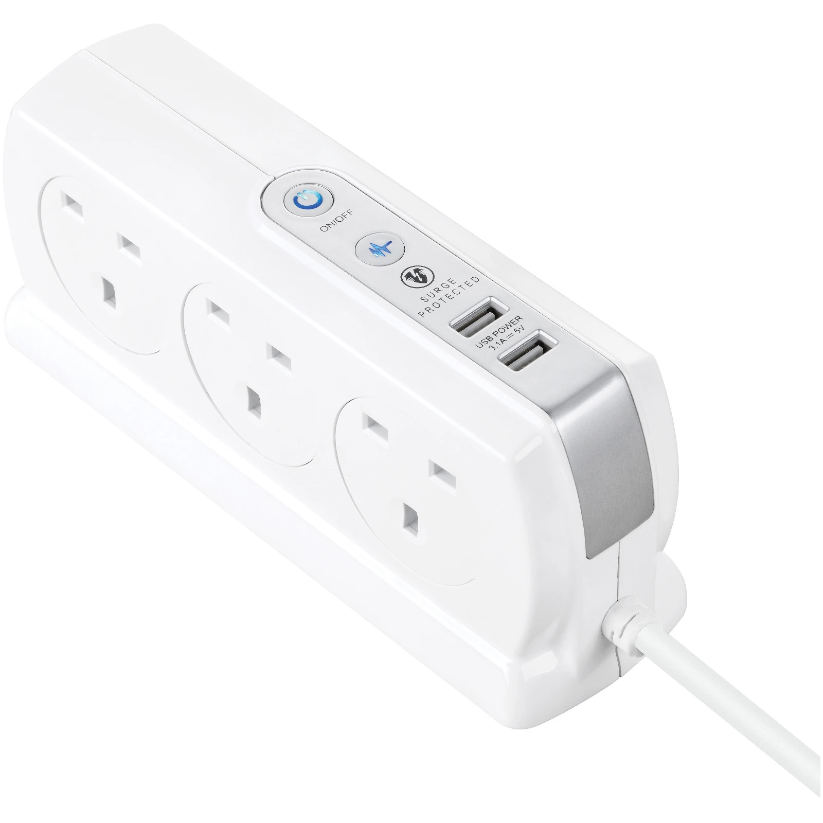 · · Trusted quality, manufactured and certified to BS1363-2 · · Two USB Ports – (2.1A shared) to power and charge your devices · · Six sockets – allows you to connect four items safely into one outlet · · Power and Surge Indicator – shows that the sockets are connected and protected · · Fuse: 13A