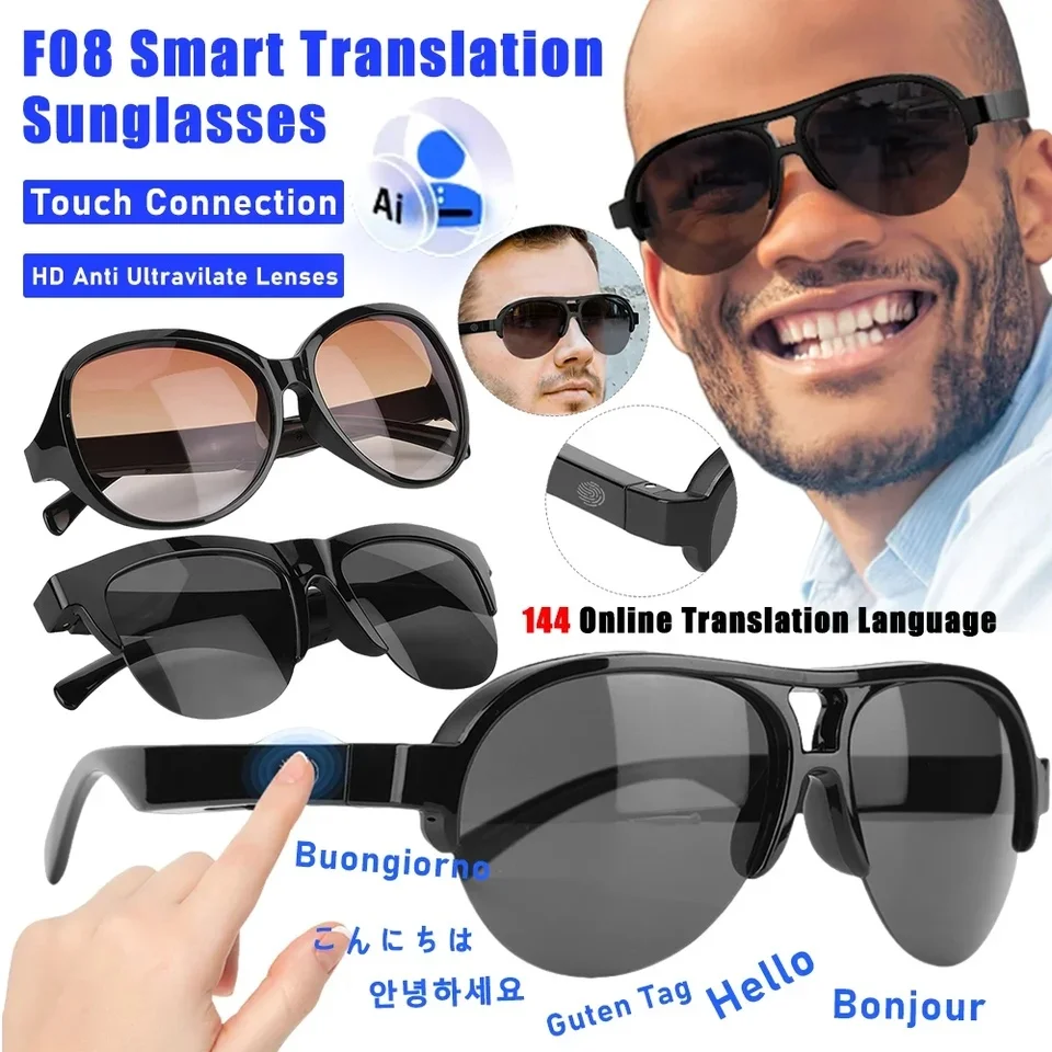 F08 Smart Translation Sun Glasses Bt Lenses Wireless AI Translator Earbuds Anti-UV Sunglass Earphone TWS Earbuds Smartglass Pack of 5
