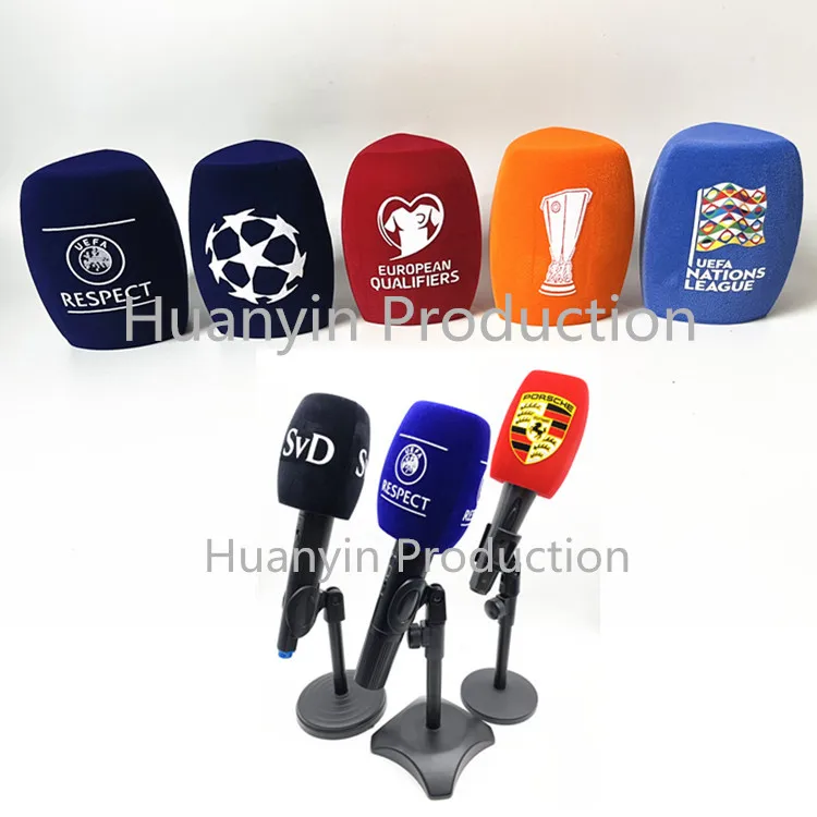 Factory Customize Microphone Foam Triangle Square For Camera Video Micro Foam Cover With Logo Windscreens Sponge Windshield Model TV press reporter mic foam windscreen mic flags Size Standard size 95-125MM triangle 3-side face Logo cutflock logo or screen print and sublimation Material High elasticity Foam 80PPI Application FM Radio Website , TV Channel company Internet Broadcasting , News or Interview Events Color Black , red , blue or custom color Packing Single Polybag Minimal Qty MOQ 10 pcs to custom any logo . Custom printed windshields flocked foam windscreens for TV FM radio microphones . FOAM shapes : Triangle 3-side , Square 4-side , Round or Custom . FOAM : Raw foam finish and flocked finish . Printed logo : cutflock , screen print and sublimation . Expertise in manufacturing audio foams for microphones and headsets . . Europe-Level quality