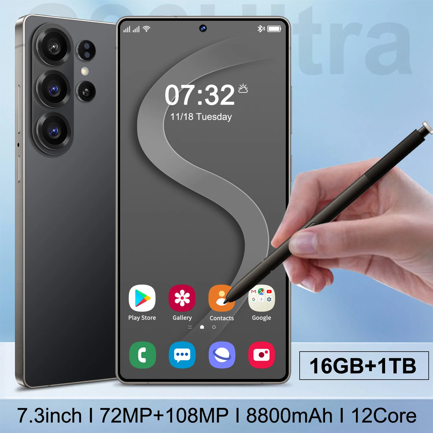S26 Ultra 5G Smartphone 16GB+1TB Storage Camera Unlocked Android Mobile Phone with Face ID Fingerprint Dual SIM