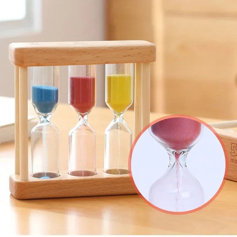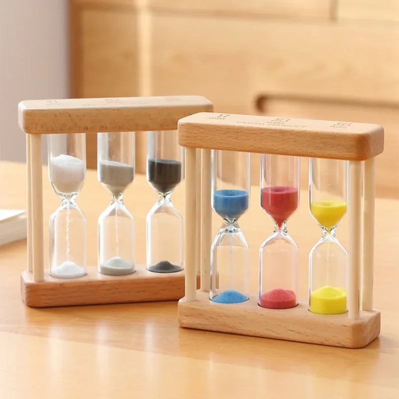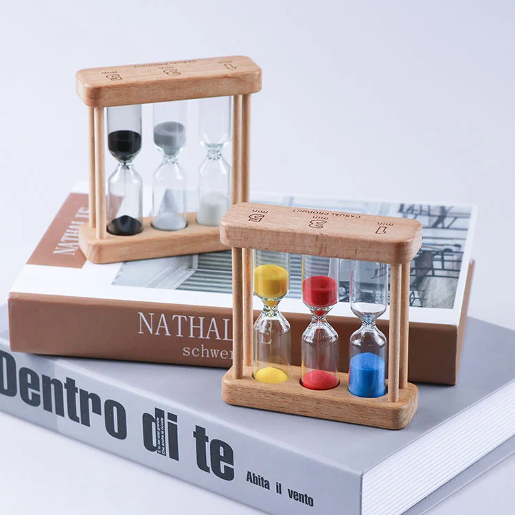 Factory Wholesale Classic Sand Timer Creative Design Desktop Clock 3 in 1 Wood Tea Sand Timer 1 3 5 Minute for Tea Maker