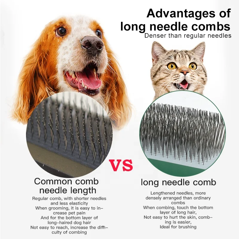Factory Wholesale Custom Logo Long Pin Pet Hair Brush Cat Dog Grooming Slicker Brush