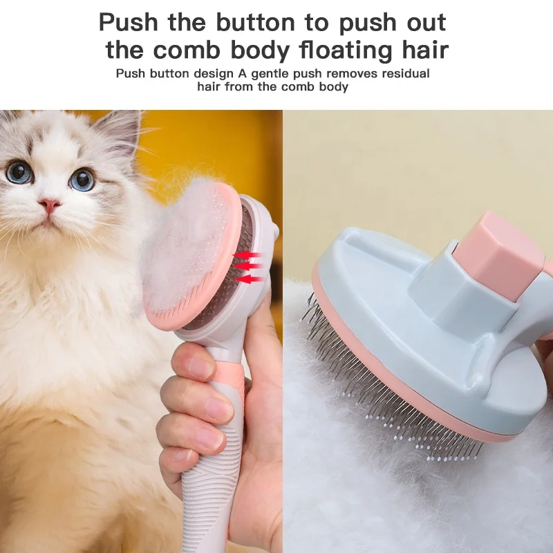 Factory Wholesale Custom Logo Self Cleaning Cat Hair Removal Pin Brush Dog Pet Grooming Slicker Brush