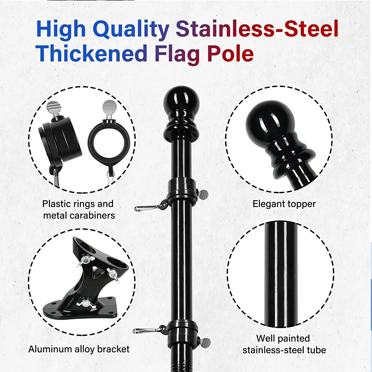 Fast Delivery of 5FT Flagpole with Collar on the Wall Flagpole Pack of 10