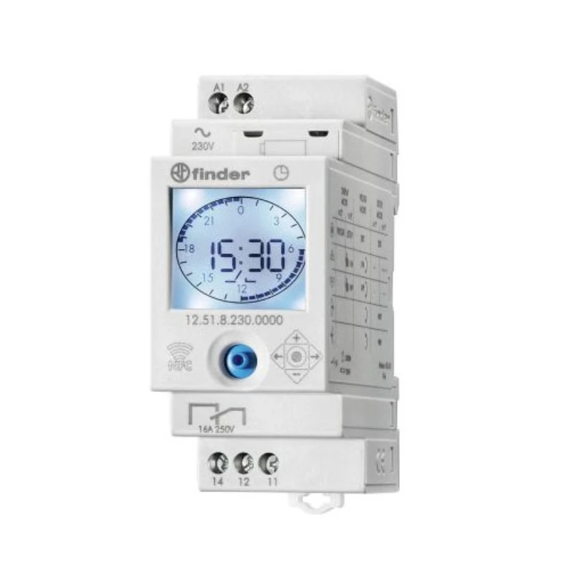 Finder’s range of digital time switches offer quick and flexible programming right from your smartphone, with NFC technology and the ‘Finder Toolbox NFC’ App – available on both Apple iPhones and Android devices. A huge advantage of Finder’s 12 Series is its ability to configure by smartphone which makes it five times faster than doing it manually. Finder’s digital time switches include Astro models which base the switching times on the calculated sunrise and sunset times for that location based on date. Location is easily set for most European countries through post codes or worldwide by coordinates.
