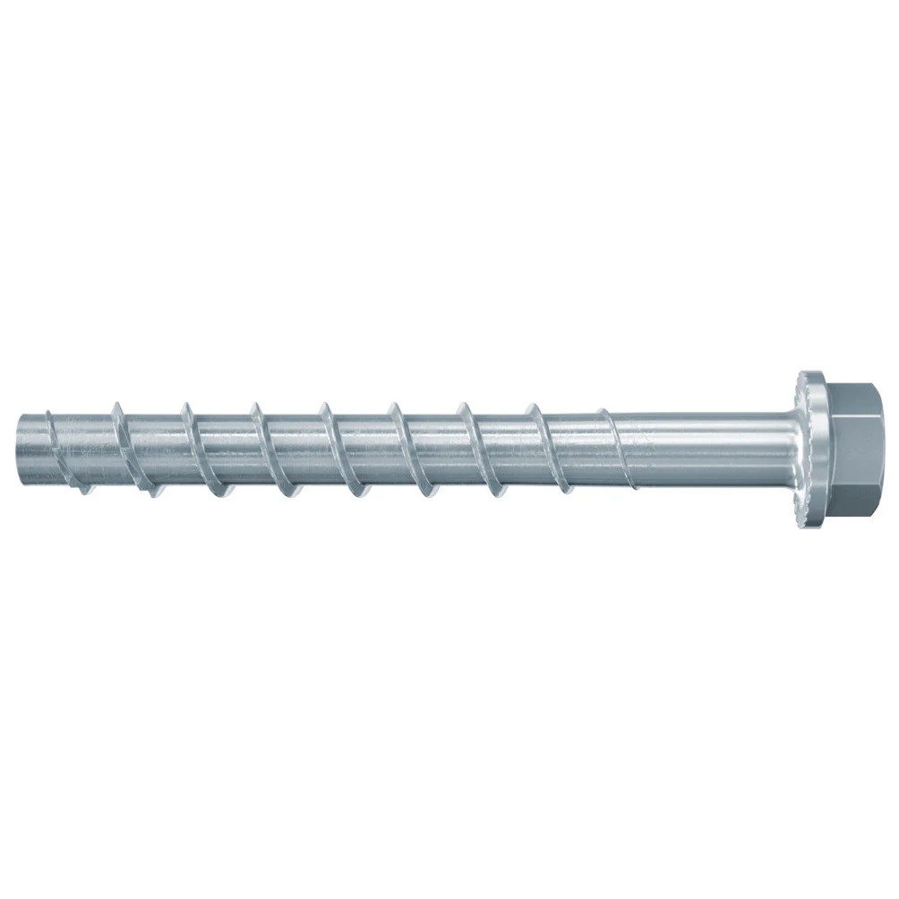 The fischer concrete screw ULTRACUT FBS II US is a powerful anchoring solution with top installation comfort. The concrete screw with its pressed-on washer is ideal for slot fixations and the anchoring of wooden constructions as well as beams and sills. The European Technical Approval for cracked concrete and non-cracked concrete as well as for seismic loads and classification into fire resistance class R 120 guarantee even more safety. The saw tooth geometry enables a quick and easy installation. No drill hole cleaning is required for installation in ceilings and floors. The expansion-free anchorage system enables low edge and axial spacings. · · · Maximum flexibility with regard to load and fixture thickness due to up to two approved embedment depths. · · The special saw tooth geometry enables fast cutting into the concrete. · · No drill hole cleaning is required for installation in ceilings or floors, or use of hollow drills with suction.